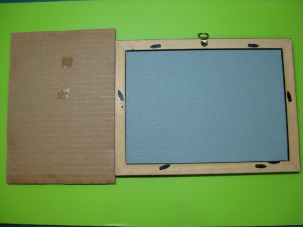 1.把未上膠的拼圖平放在木框附的瓦楞紙板上